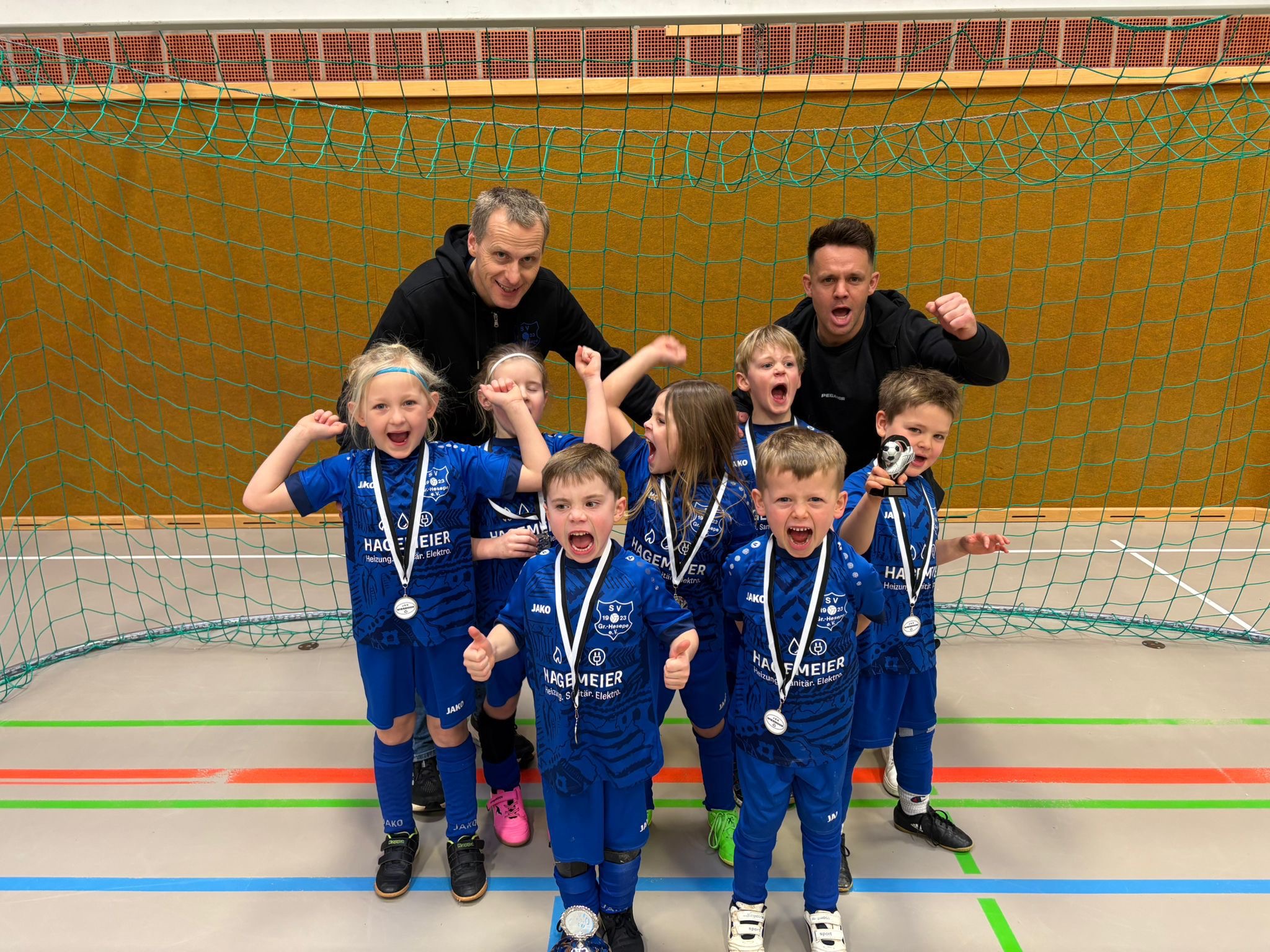 Pünktlich um 10:00 Uhr rollte der Konvoi Richtung Wiesmoor. Im ersten Spiel hat man ein wenig verschlafen und es dem Gegner viel zu einfach gemacht. Das Spiel hat man dann am Ende leider verloren. Danach gab es direkt eine deutliche Steigerung in dem Turnier und die Kinder haben gezeigt,was in ihnen steckt. Da man in dieser Konstellation fast noch nie so zusammengespielt hat,kann man stolz auf den zweiten Platz sein. Dank einer geschlossenen Mannschaftsleistung und einer perfekt funktionierenden Truppe wurde Emilio Beneke zum besten Spieler des Turniers gewählt. Ein Riesen Dank an alle Eltern, die diesen Weg mitgehen und die Reise nach Wiesmoor angetreten sind. Das Turnier bleibt auf jeden Fall in Erinnerung und die Kinder wie Trainer haben einiges dazugelernt.