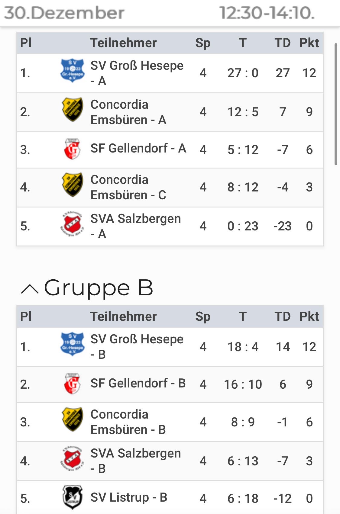 Beide Teams haben in ihren Gruppen verdient den ersten Platz gewonnen. Vielen Dank an Salzbergen für das super Turnier. Und vielen Dank auch an alle Beteiligten für das tolle und sportlich erfolgreiche Jahr.