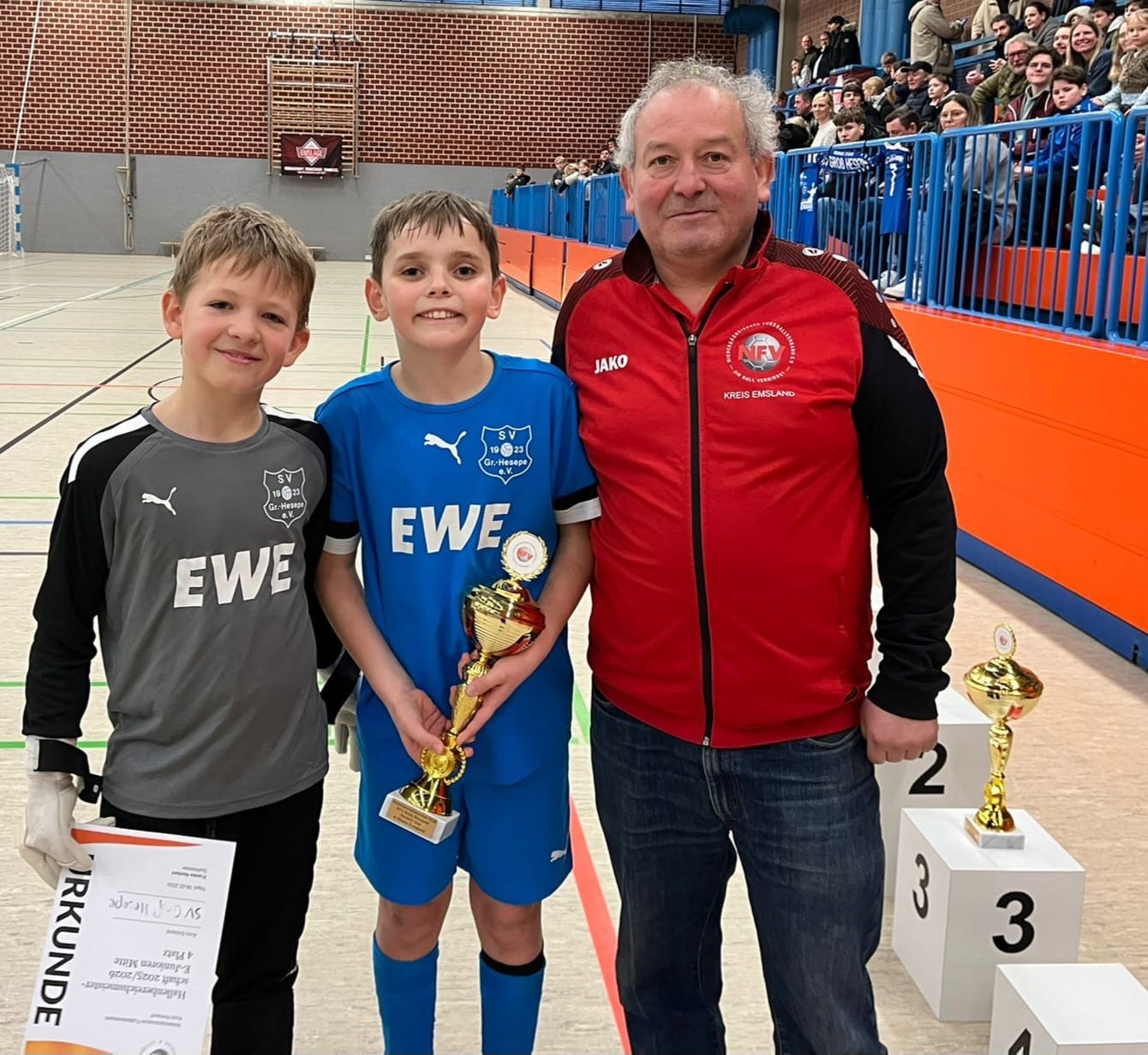Unter dem Jubel der lautstarken heseper Anhänger nahmen die Kinder ihren Pokal entgegen.
