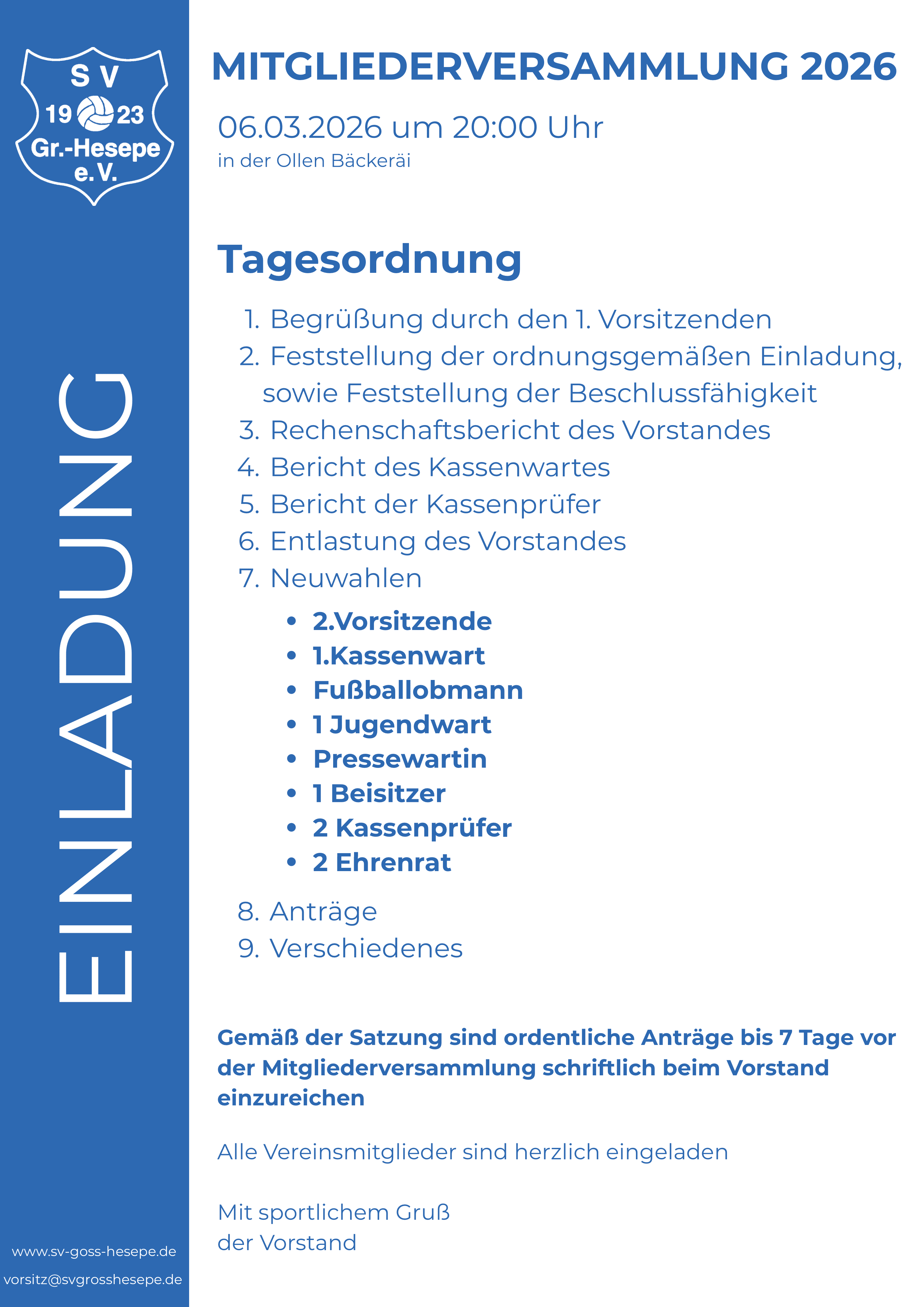 Diese findet am 06.03. um 20:00 Uhr statt und richtet sich an alle Mitglieder unseres Vereins.