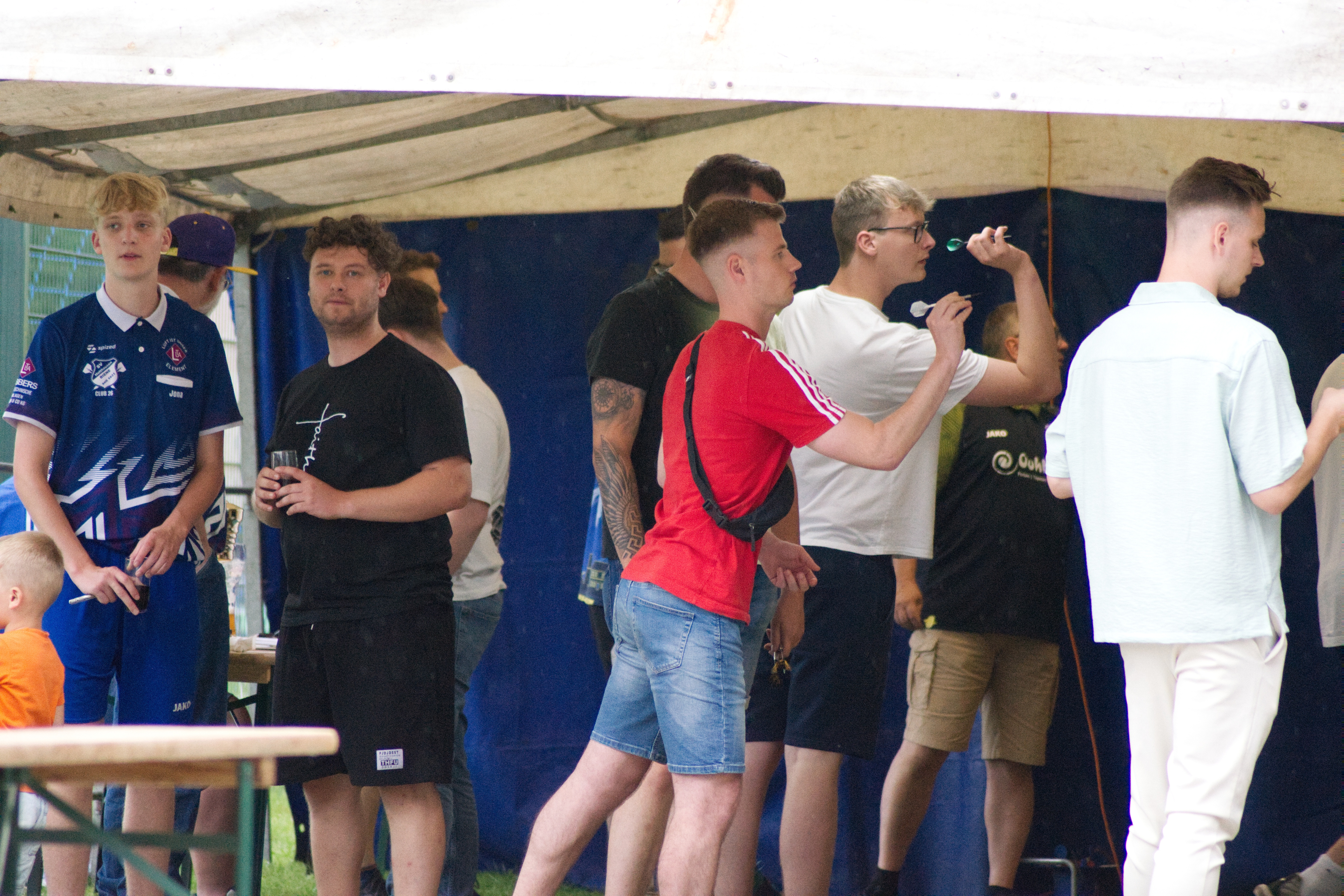 Der Blockspieltag der F-Jugend eröffnete den Sportwochen Samstag. Obwohl es Freitag spät wurde, fanden sich dennoch zahlreiche BesucherInnen im Eschpark ein. Pommes und Bratwurst halfen dem ein oder anderen wieder etwas auf die Beine zu kommen. Wer noch einen Kuchen wollte, musste sich allerdings beeilen. Besonders das Volleballturnier zog zahlreiche Sportbegeisterte an. Aber auch das Boule Turnier, etwas abseits des Sportplatzes auf unserer Boule Bahn, wurde gut angenommen. Die Kinder konnten derweil an dem Stationslauf des Zeltlagerteams teilnehmen, oder Action mit der Feuerwehr erleben. Der Regen zwischendurch tat der super Stimmung zu keinem Zeitpunkt einen Abbruch.